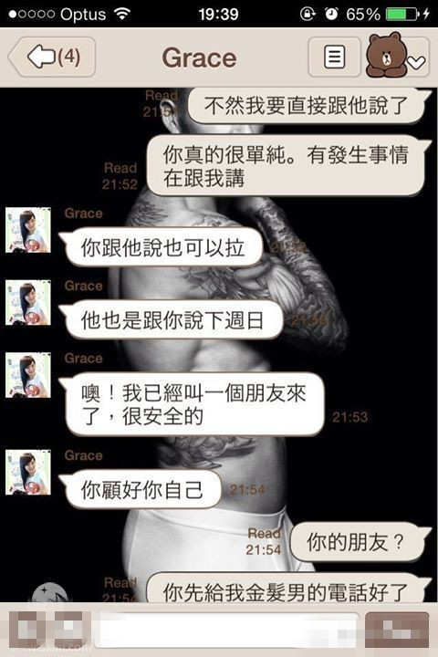 还一脸凶狠地说:“你要工作吗?我有很多(然后秀出他跟其他工厂的简讯),你看看我有这么多工作,你有必要跟他要工作吗?来之前你不是就答应我不给他们电话的吗?!你现在把SIM卡拿出来!拿去换另一个号码,你不准跟他有任何接触!”
