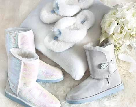 后来UGG又推出了各种"花样"UGG,还有婚鞋系列I Do,本来看起来质朴的UGG突然变的闪闪惹人爱,也有不少的女孩喜欢,你也别不相信真的有人穿着这个系列去结婚哦。